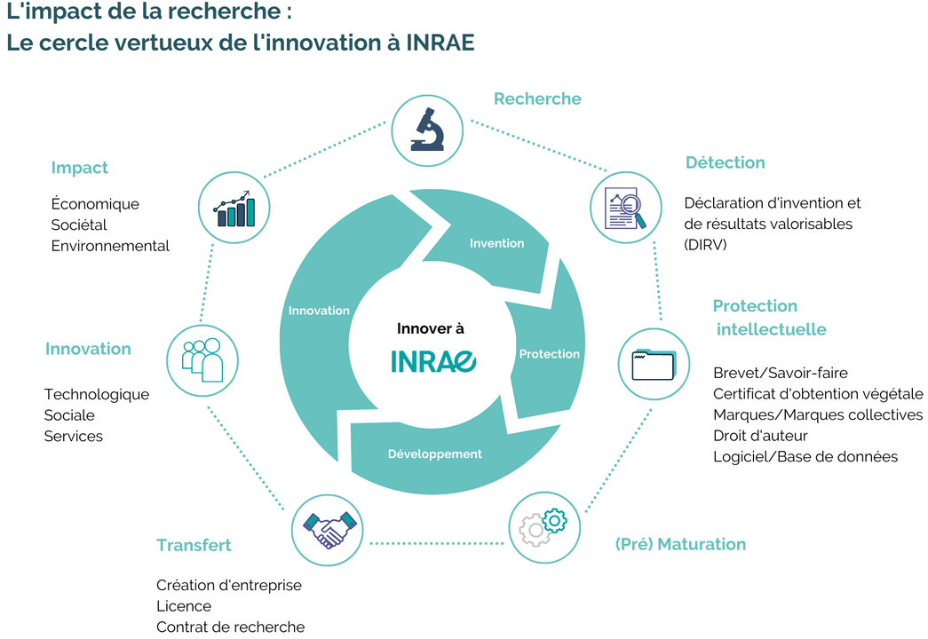 L’innovation est un chemin long et complexe qui nécessite des expertises métier que la DPTI et son réseau met à votre service pour vous accompagner. C’est aussi un cercle vertueux qui permet de maximiser l’impact de la recherche à INRAE.